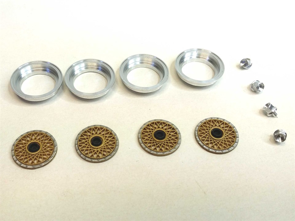 512 front wheels complete with unpainted inserts, aluminum ring, nut + M3 screws