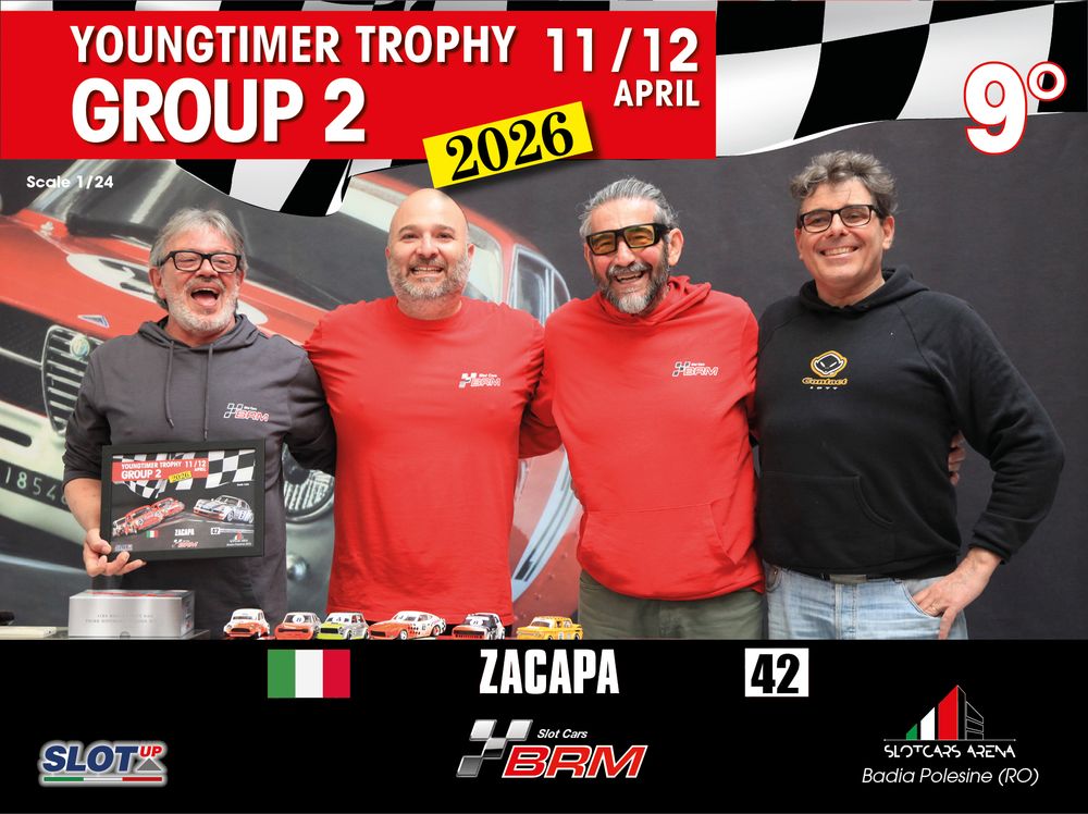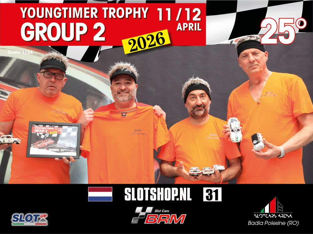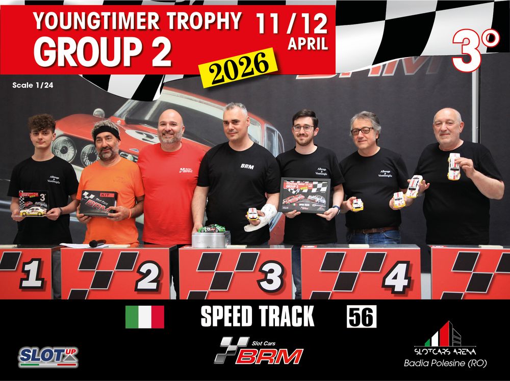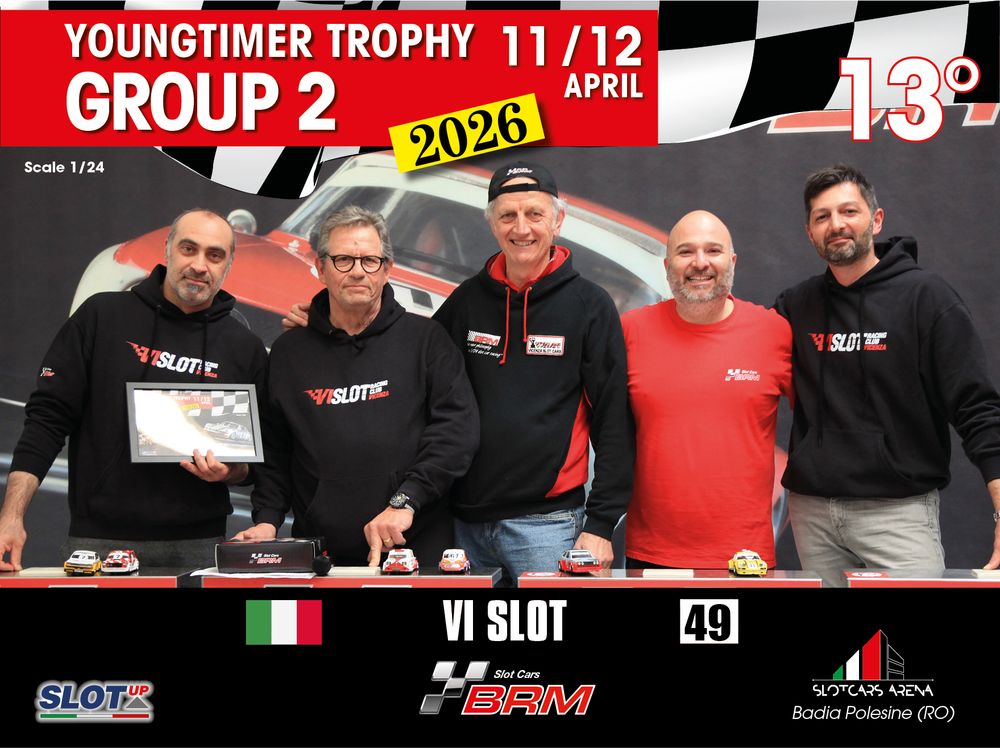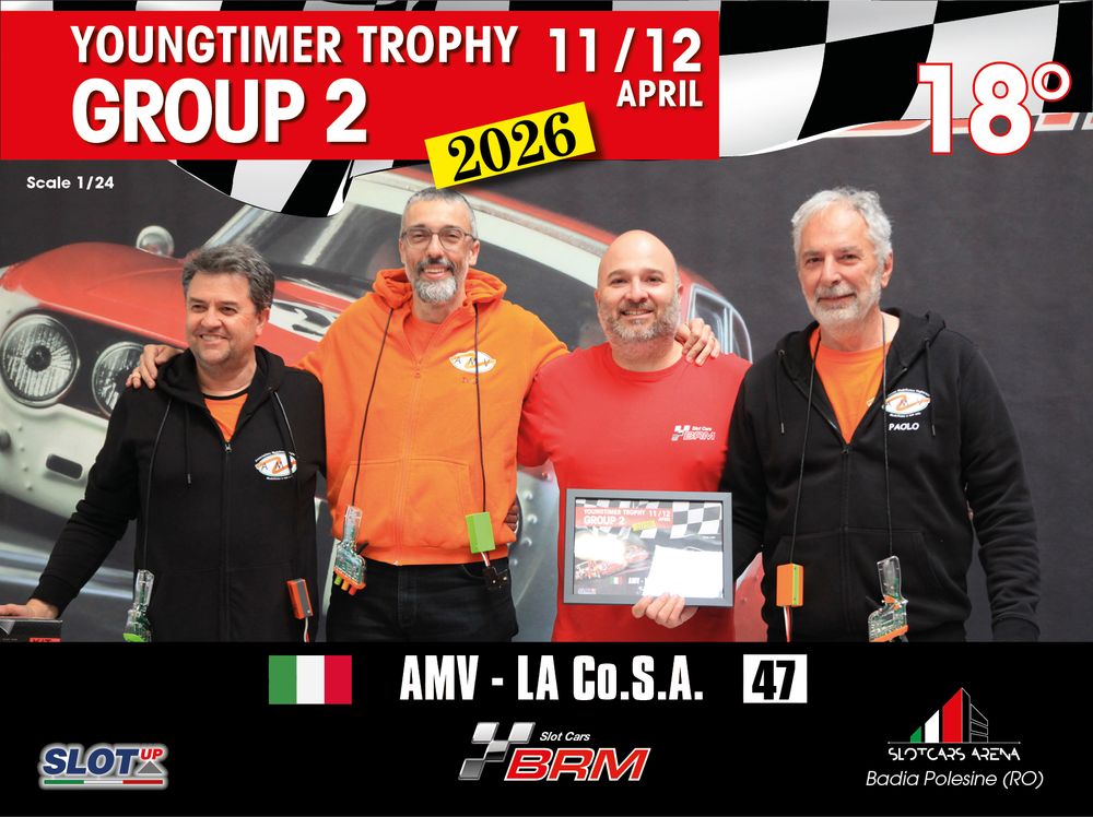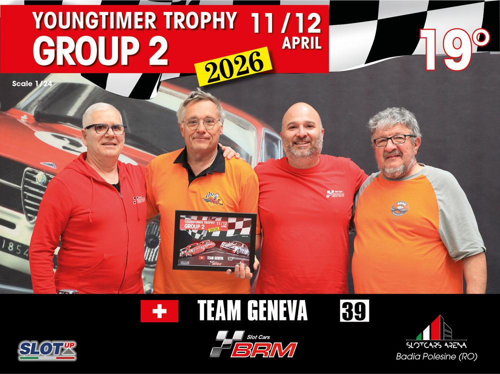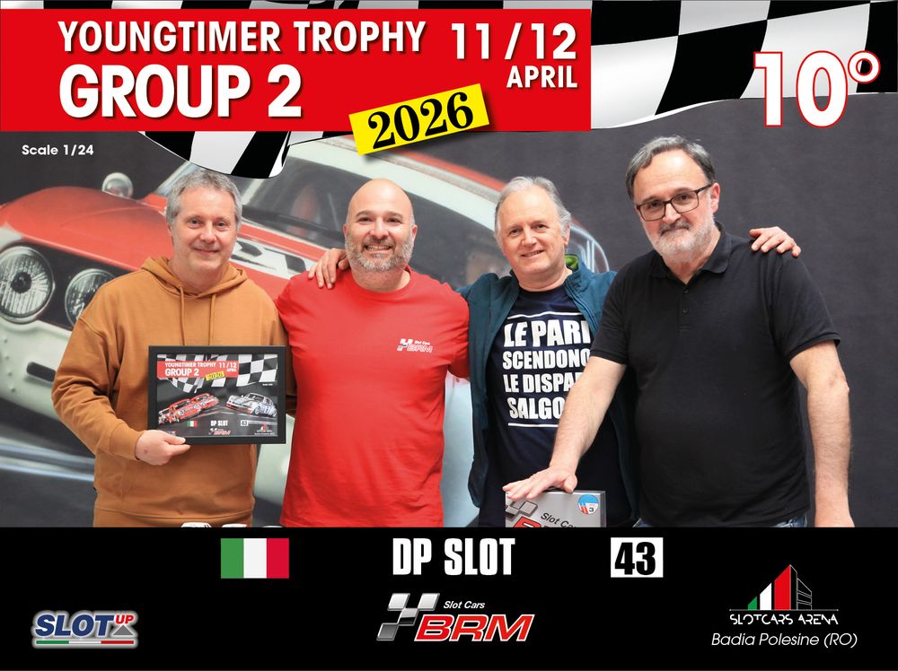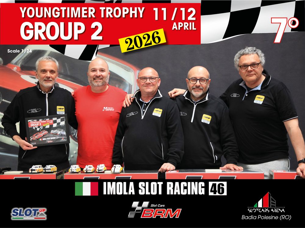 The Youngtimer Trophy – Group 2 (2026) at the BRM Slot Car Arena in Badia Polesine belongs to that second category. It wasn’t simply a competition defined by rankings and lap counts—it was a shared experience that brought together some of the most passionate and skilled slot racing teams on the scene.