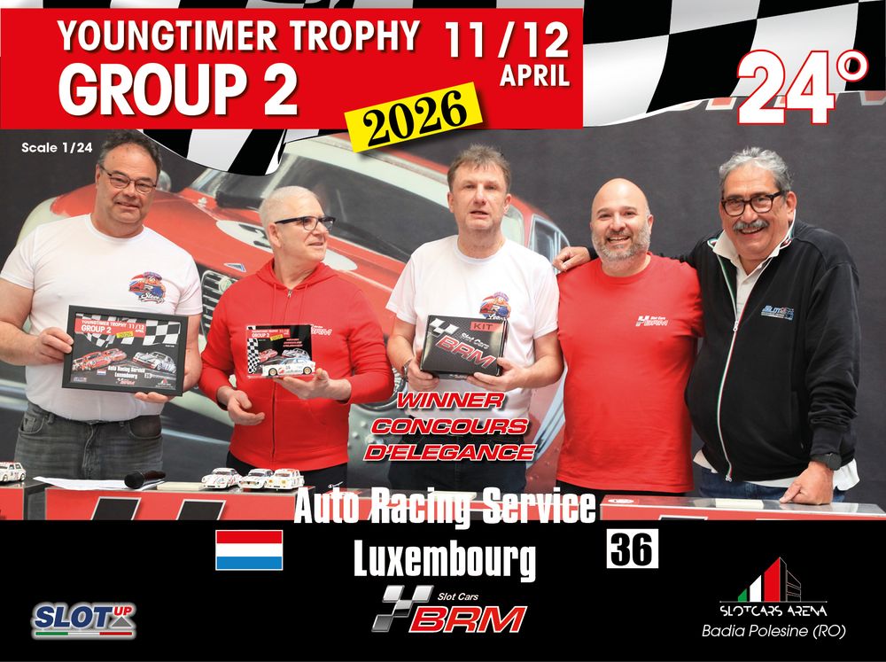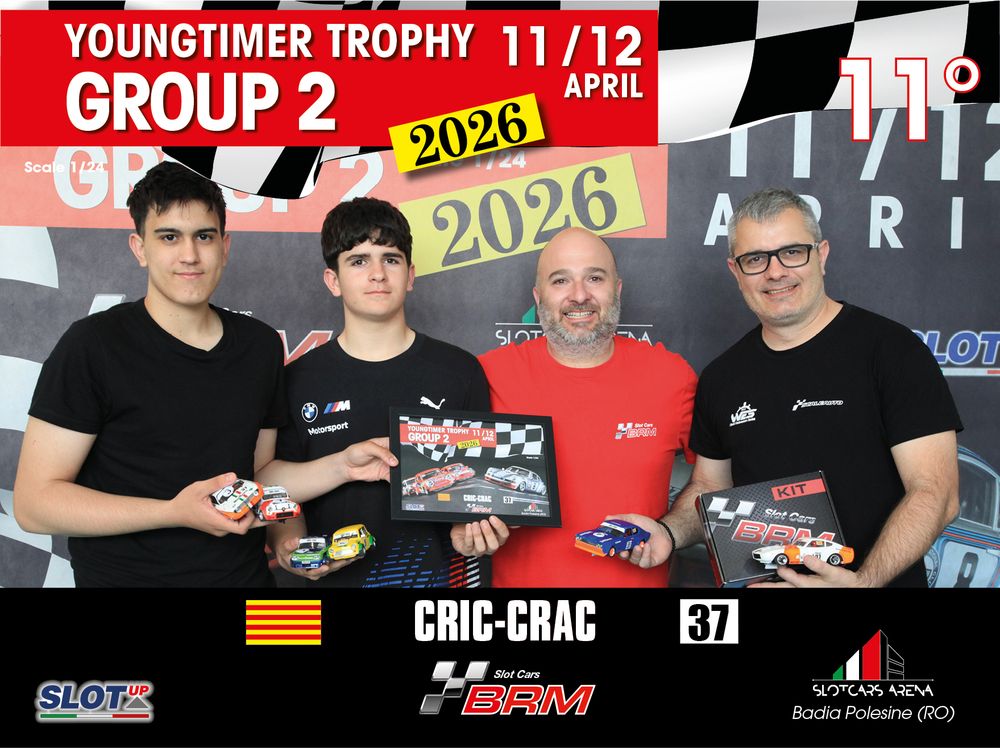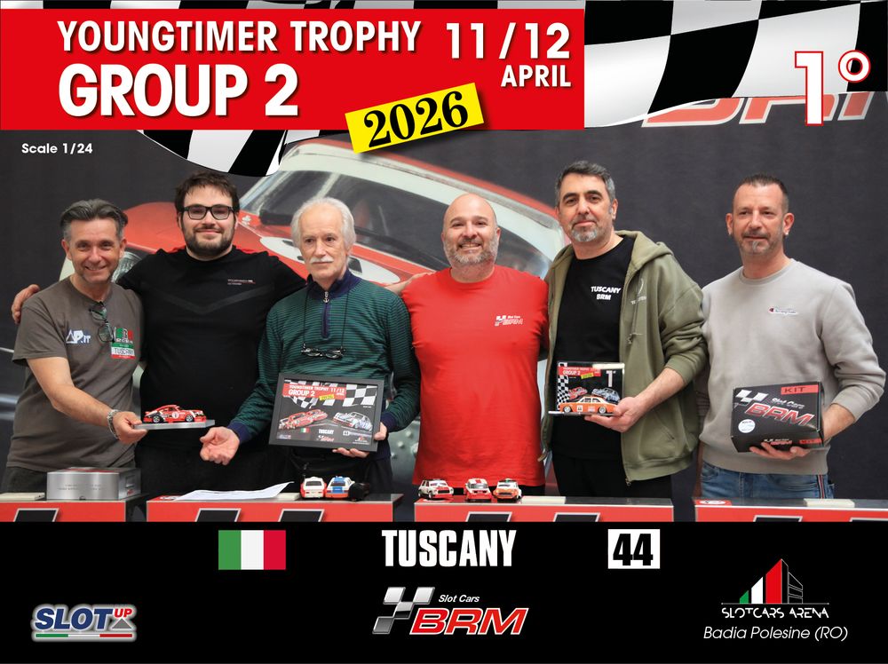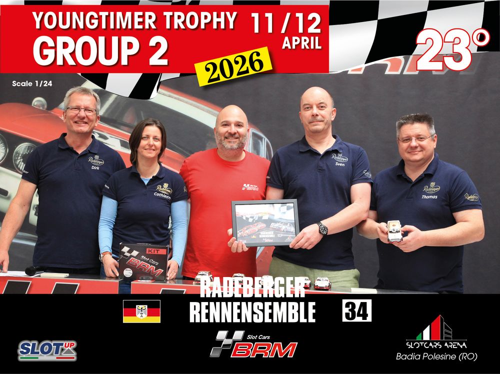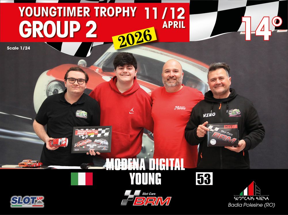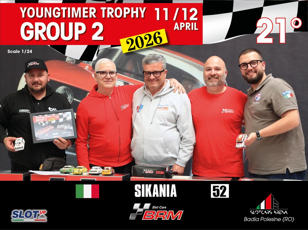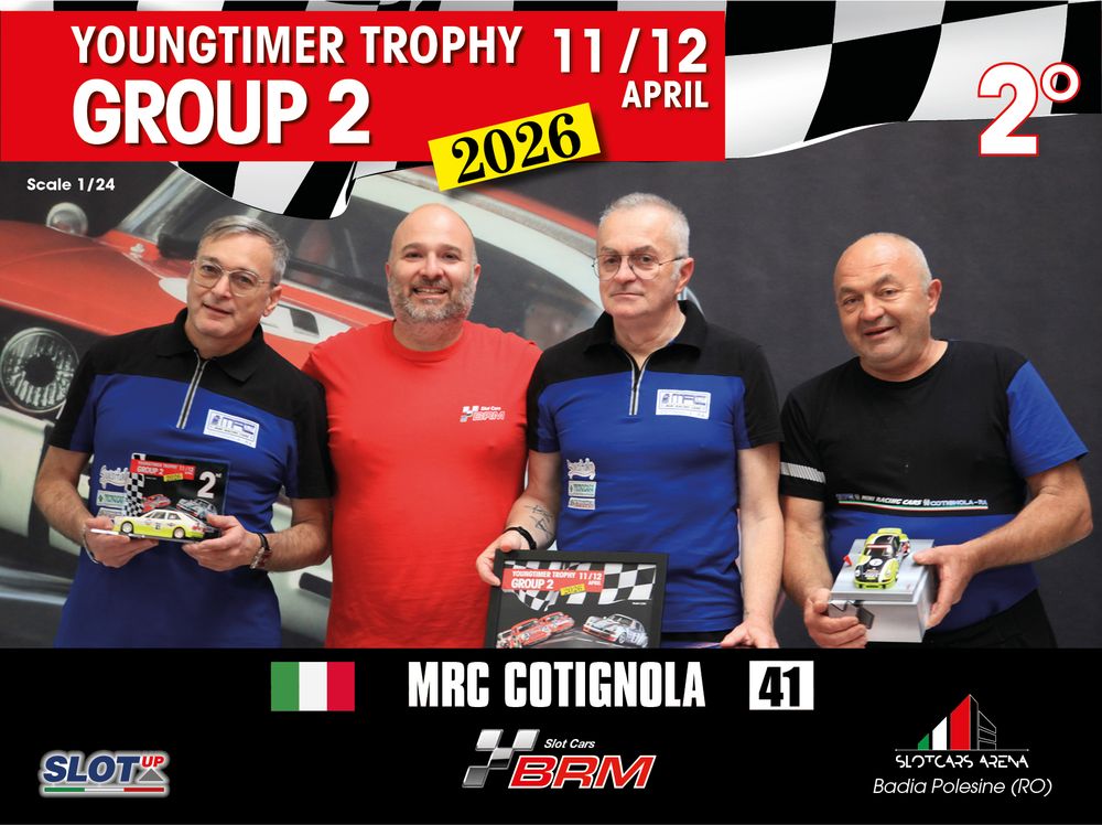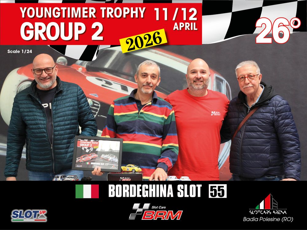 The Youngtimer Trophy – Group 2 (2026) at the BRM Slot Car Arena in Badia Polesine belongs to that second category. It wasn’t simply a competition defined by rankings and lap counts—it was a shared experience that brought together some of the most passionate and skilled slot racing teams on the scene.