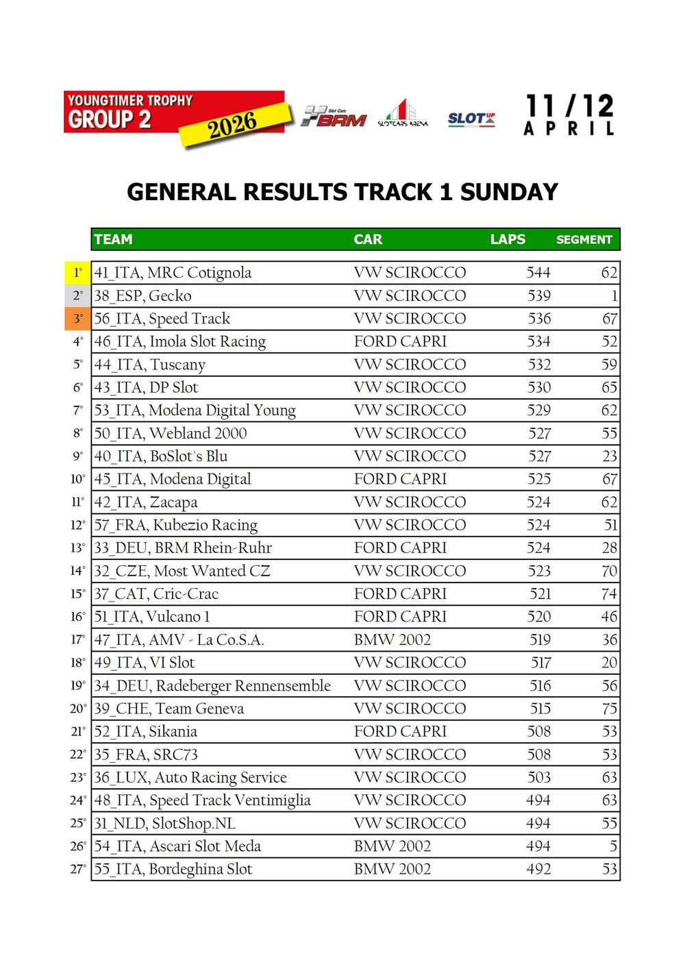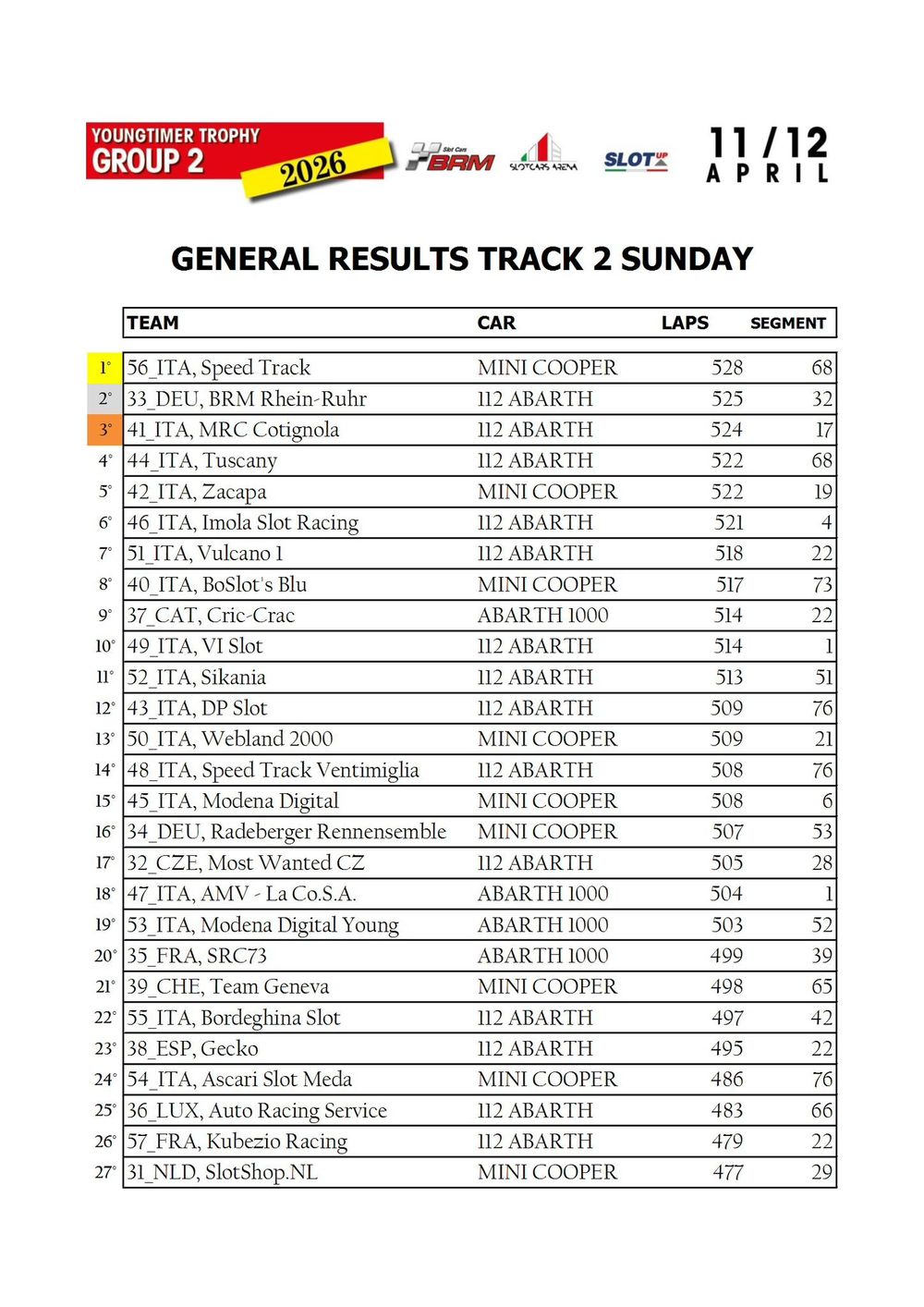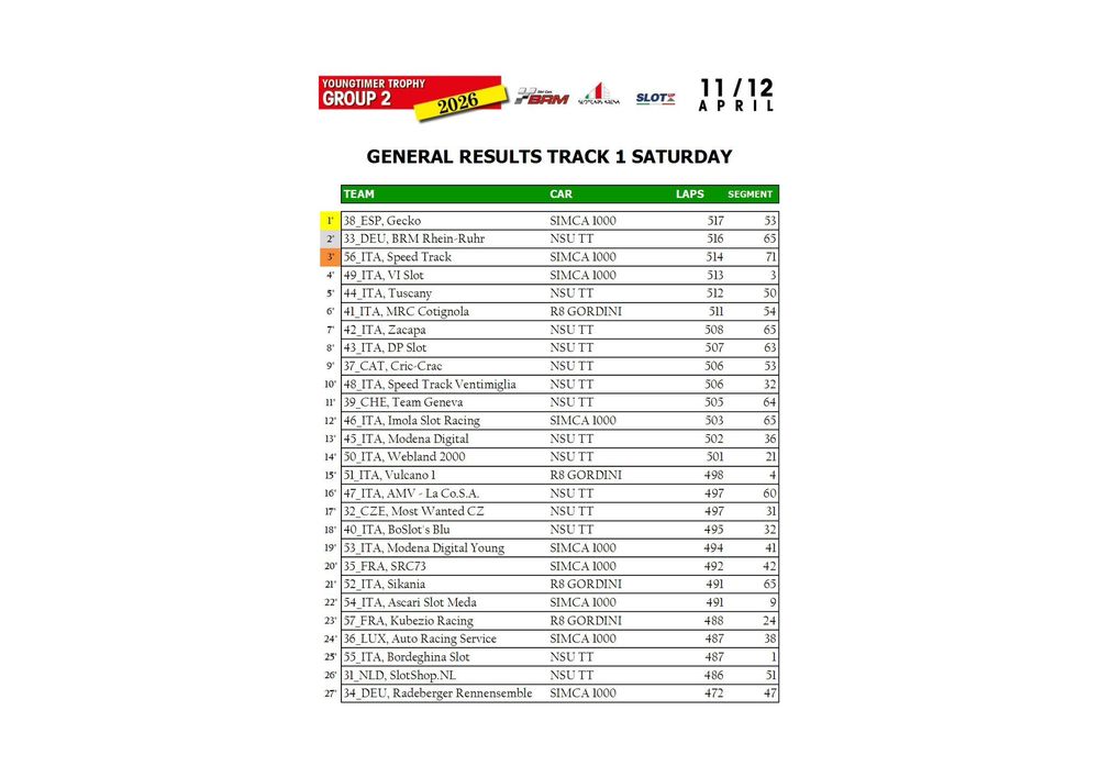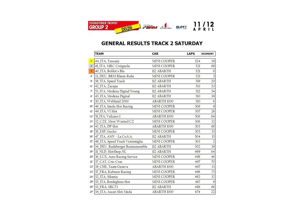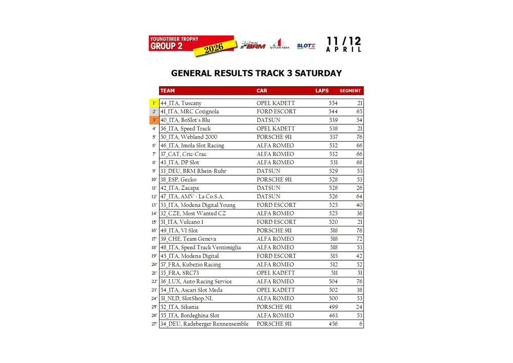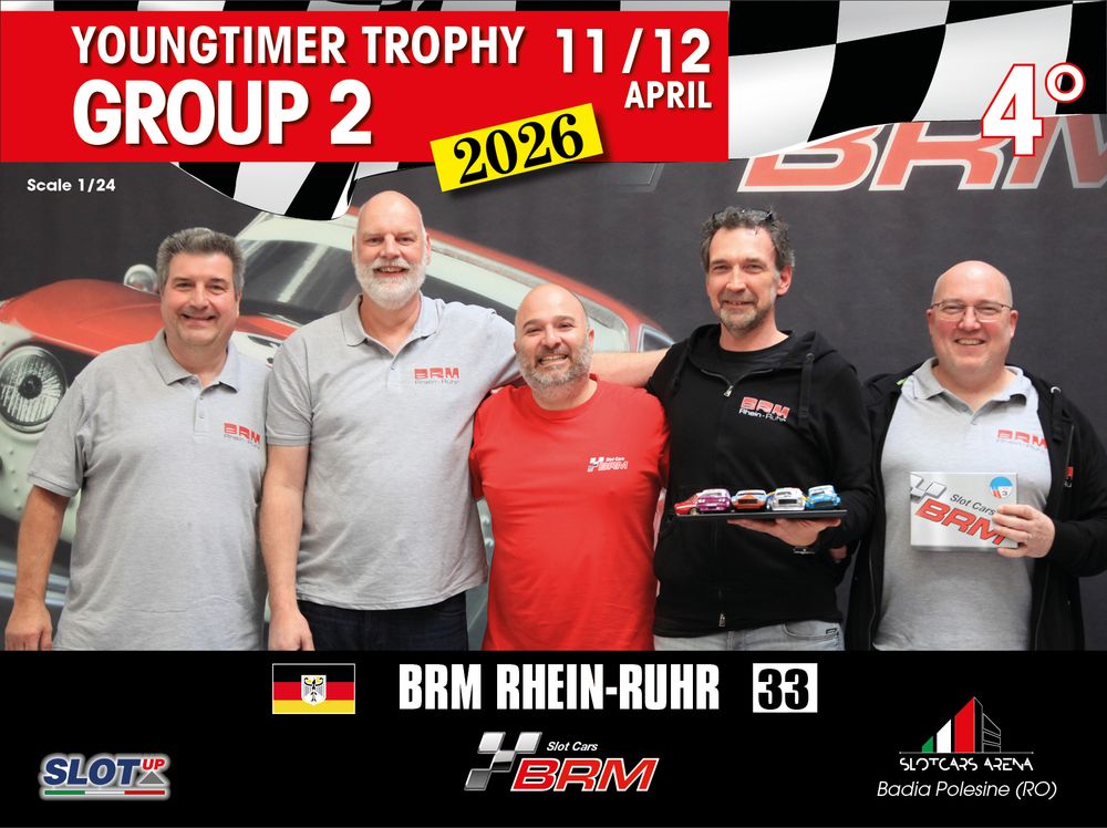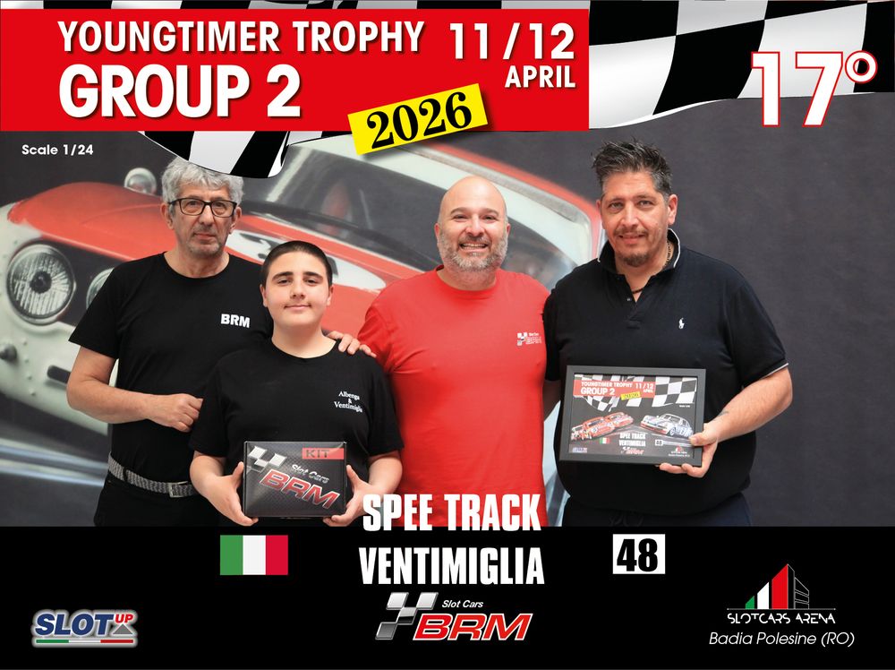 The Youngtimer Trophy – Group 2 (2026) at the BRM Slot Car Arena in Badia Polesine belongs to that second category. It wasn’t simply a competition defined by rankings and lap counts—it was a shared experience that brought together some of the most passionate and skilled slot racing teams on the scene.